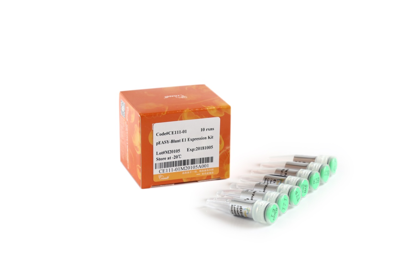 pEASY?-Blunt E1 Expression Vector與pET載體骨架相似,利用5分鐘快速平端克隆技術(shù)克隆PCR產(chǎn)物;利用T7lac啟動(dòng)子嚴(yán)謹(jǐn)調(diào)控、高效表達(dá)目的基因。對(duì)照插入片段750 bp,表達(dá)的蛋白分子量約27 kDa。