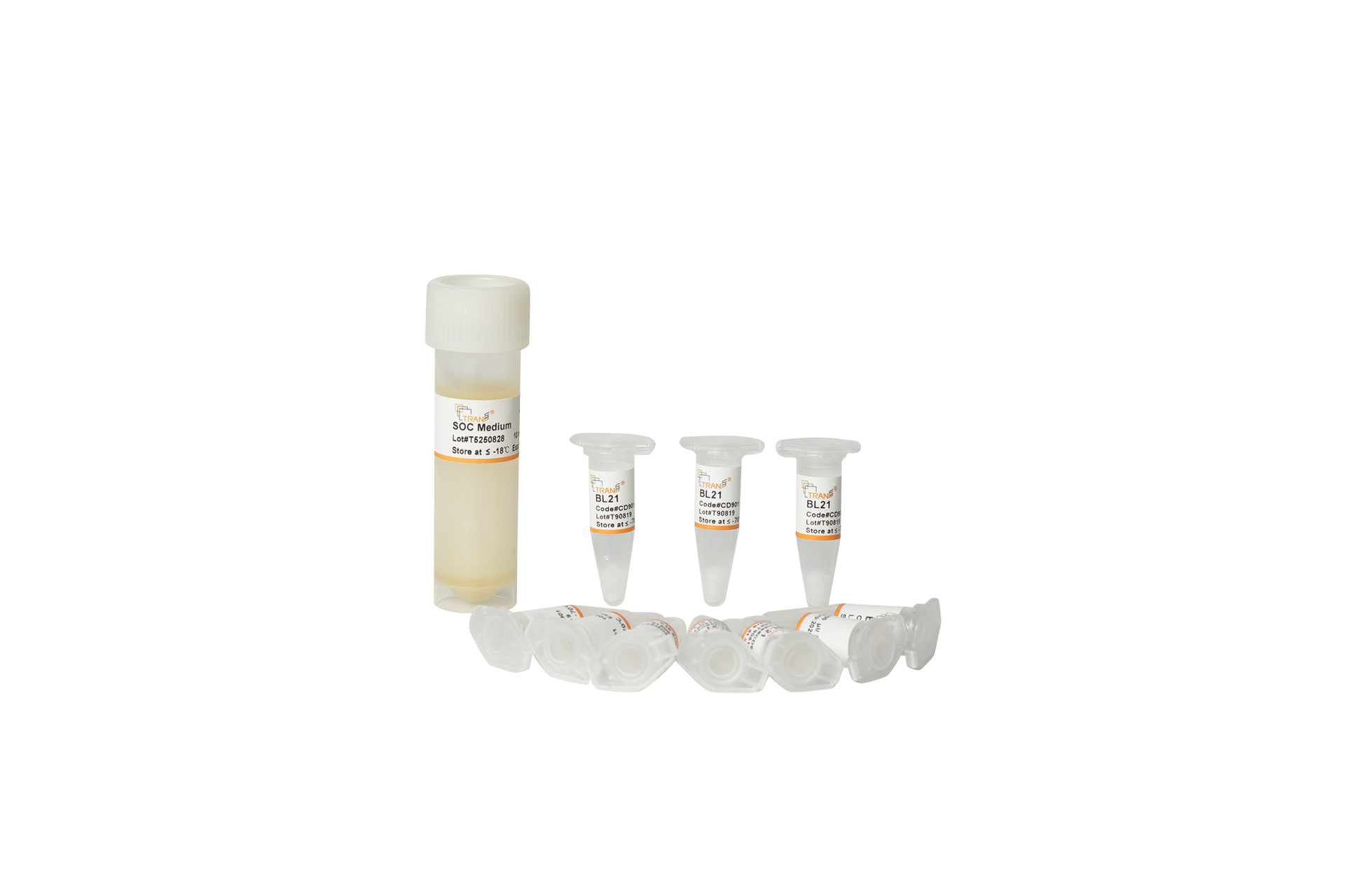 Trans BL21化學(xué)感受態(tài)細(xì)胞采用進口菌株,經(jīng)特殊工藝制作,可用于DNA的化學(xué)轉(zhuǎn)化。細(xì)胞具有四環(huán)素(TetR)抗性。使用pUC19質(zhì)粒檢測,轉(zhuǎn)化效率可達107 cfu/μg DNA。使用Control Plasmid II (Amp+)用于檢測細(xì)胞是否具有表達功能,表達蛋白大小為26 kDa。