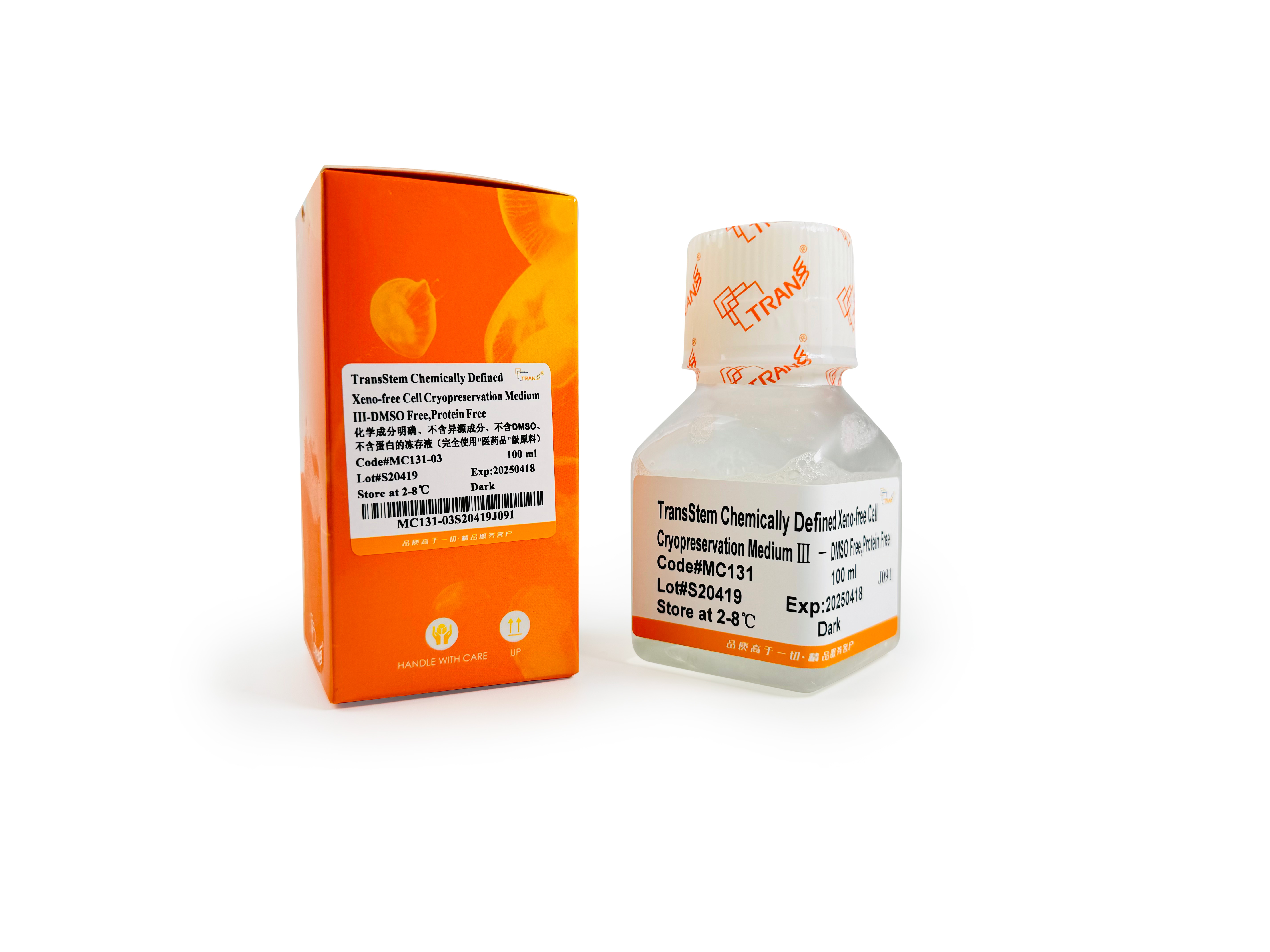 TransStem? Chemically Defined Xeno-free Cell Cryopreservation Medium III—DMSO Free,Protein Free 是一種化學(xué)成分明確、無動物源性成分、不含二甲基亞砜(DMSO) 、不含蛋白成分、完全使用“醫(yī)藥品”級原料的即用型細(xì)胞凍存液。該產(chǎn)品已完成毒性實驗,可用作細(xì)胞藥物的藥用輔料,通用于各種細(xì)胞類型,包括間充質(zhì)干細(xì)胞,淋巴細(xì)胞等。該產(chǎn)品穩(wěn)定性好,能有效提高各類細(xì)胞復(fù)蘇活率。使用該產(chǎn)品凍存細(xì)胞可直接存放于-80℃冰箱凍存,無需經(jīng)過費時的程序降溫過程。