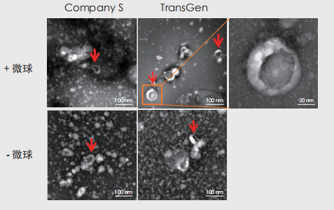 TransGen 試劑盒純化得到的 Exosome 結(jié)構(gòu)完整,雜質(zhì)少,電鏡背景更加清晰