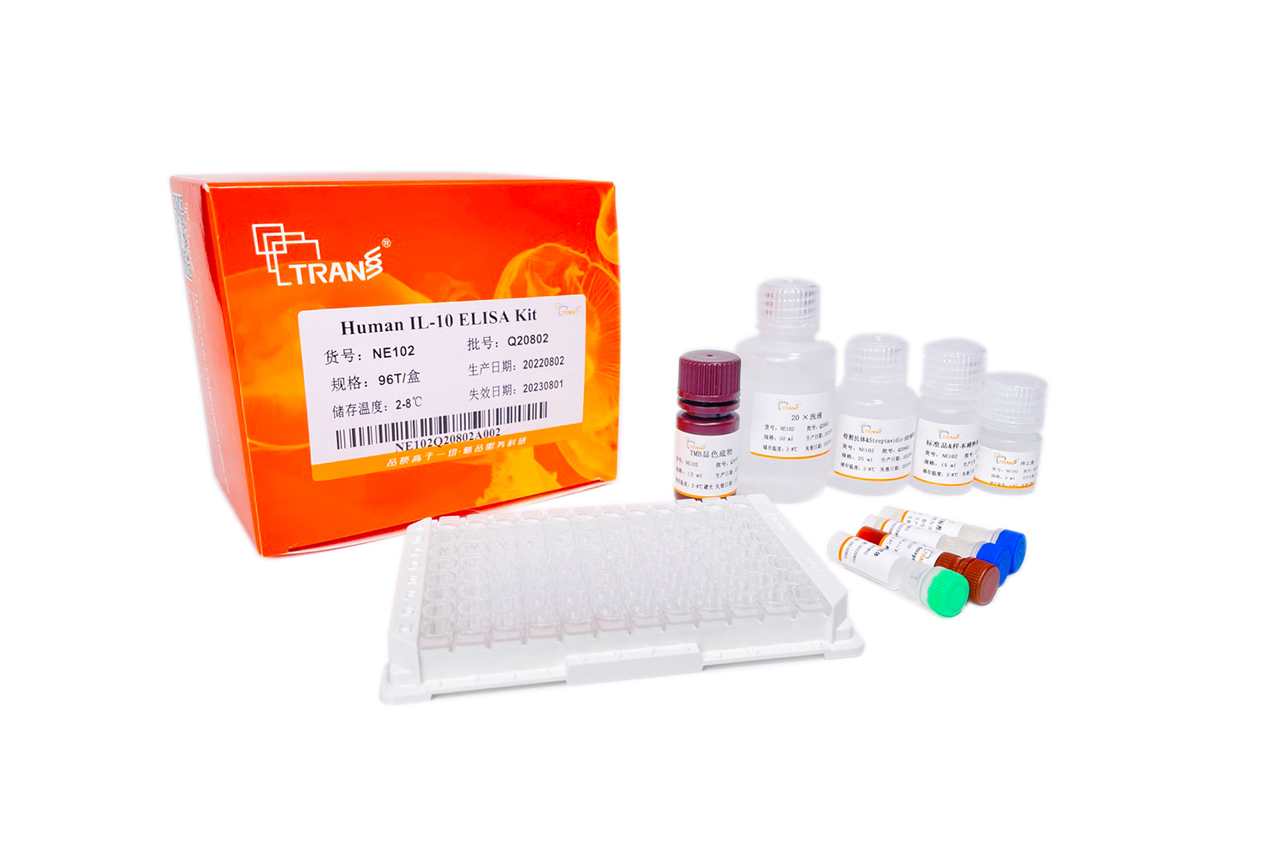 本試劑盒采用雙抗體夾心ELISA法定量測定人血清、血漿和細(xì)胞培養(yǎng)上清中的IL-10含量。本試劑盒采用高親和力的抗人IL-10抗體預(yù)包被酶標(biāo)板,將標(biāo)準(zhǔn)品/待測樣本加入微板孔中,經(jīng)過孵育后樣本中存在的IL-10會與酶標(biāo)板上的預(yù)包被抗體特異性結(jié)合。洗滌去除未結(jié)合物后,將生物素標(biāo)記的抗人IL-10檢測抗體加入微板孔中,再次孵育后檢測抗體會與錨定在酶標(biāo)板上的IL-10特異性結(jié)合。隨后,將辣根過氧化物酶標(biāo)記的鏈霉親和素(Streptavidin-HRP)加至微孔板中并孵育,通過檢測抗體上的生物素和鏈霉親和素發(fā)生的高強(qiáng)度非共價(jià)結(jié)合,形成“包被抗體-人IL-10蛋白-檢測抗體-Streptavidin-HRP”免疫復(fù)合物。再次洗滌后,將顯色底物TMB加至微板孔中,HRP會催化TMB底物生成藍(lán)色產(chǎn)物,顏色反應(yīng)的深淺將與樣本中IL-10的濃度成正相關(guān)。而后加入終止液終止反應(yīng),在450 nm波長(參考波長570 - 630 nm)處測定吸光度值。通過繪制標(biāo)準(zhǔn)曲線,由樣本吸光度值可計(jì)算出樣本中所含IL-10濃度。本試劑盒特異性強(qiáng)、檢測靈敏度高,同時(shí)操作更加便捷。