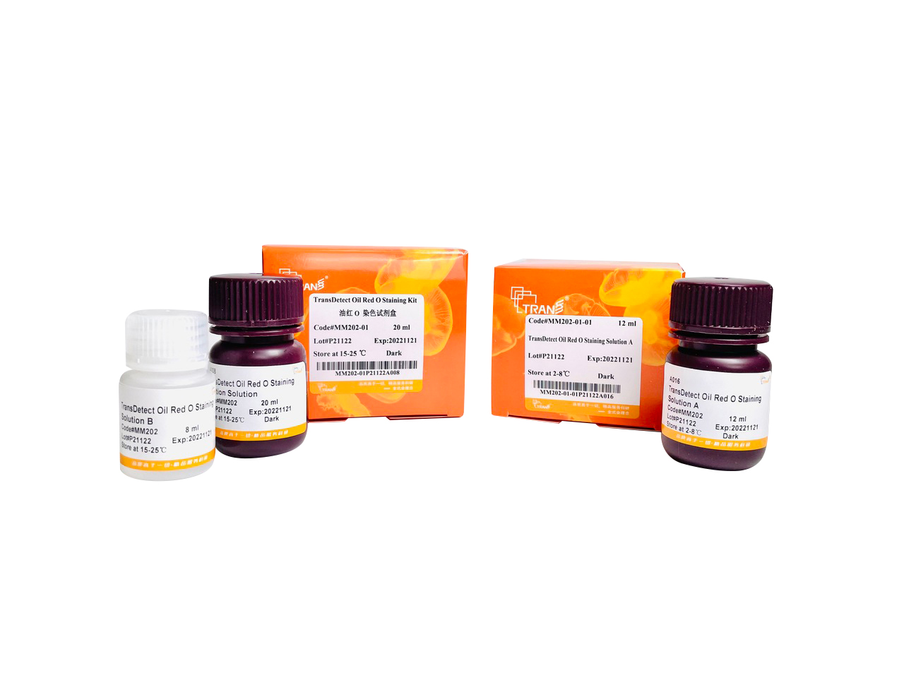 油紅O (Oil Red O) 屬于偶氮染料,是很強(qiáng)的脂溶劑和染脂劑,在脂質(zhì)內(nèi)能高度溶解,可特異性地與細(xì)胞或組織中的甘油三酯結(jié)合呈小脂滴狀。其原理是油紅O在脂類中的溶解度比在溶劑中大,當(dāng)進(jìn)行細(xì)胞或組織染色時,染料離開有機(jī)溶劑而溶于細(xì)胞或組織內(nèi)的脂質(zhì) (如脂滴) 中,從而使細(xì)胞內(nèi)的脂滴呈橘紅色至紅色 (具體顏色因脂質(zhì)濃度而定) 。該產(chǎn)品適用于脂肪細(xì)胞的染色,也可配合TransDiffer? Human Mesenchymal Stromal Cell Adipogenic Differentiation Medium (TransGen, Cat.MM201) 進(jìn)行人間充質(zhì)干細(xì)胞成脂分化能力檢測。
