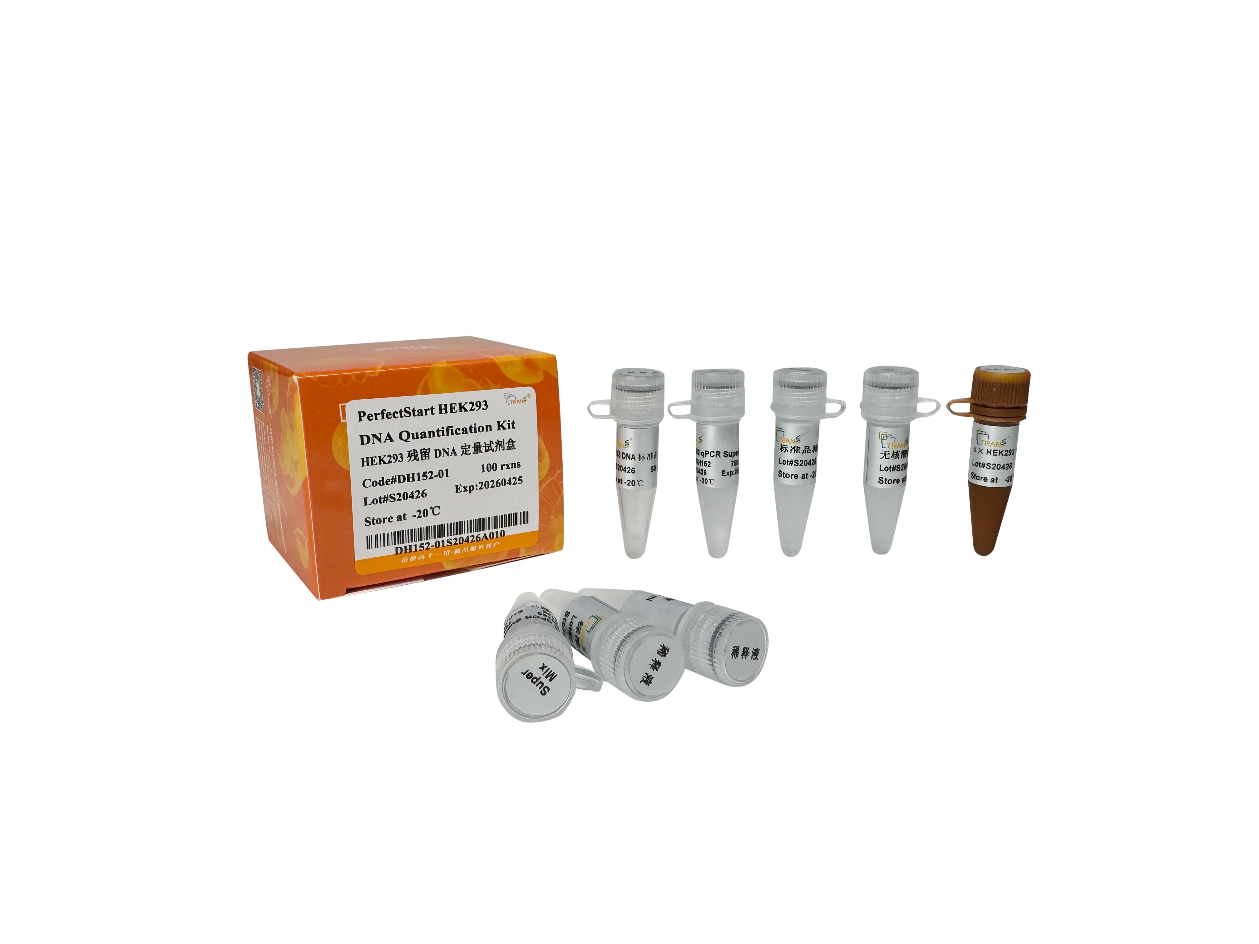 本產(chǎn)品用于對各類生物制品中的HEK293細胞DNA進行定量檢測,該試劑盒可與本公司的磁珠法殘留 DNA 樣本前處理試劑盒(目錄號:EH201-01或EH201-11)配套使用。本產(chǎn)品原理為利用在PCR體系中加入熒光探針,擴增過程中其熒光量與擴增產(chǎn)物量成正比,通過熒光量的檢測測定樣品核酸量。本產(chǎn)品中的2×HEK293 qPCR SuperMix 含PerfectStart Taq熱啟動酶 (利用3種單克隆抗體與Taq DNA Polymerase高效結合,有效地封閉了DNA聚合酶活性,阻止了低溫下的非特異性擴增)、針對HEK293細胞DNA檢測特殊優(yōu)化的qPCR反應緩沖液、dNTPs、PCR增強劑、穩(wěn)定劑。此外,本反應液引入了dUTP/UDG系統(tǒng),可在反轉錄前降解含U的ssDNA和dsDNA,消除由PCR產(chǎn)物導致的交叉污染。