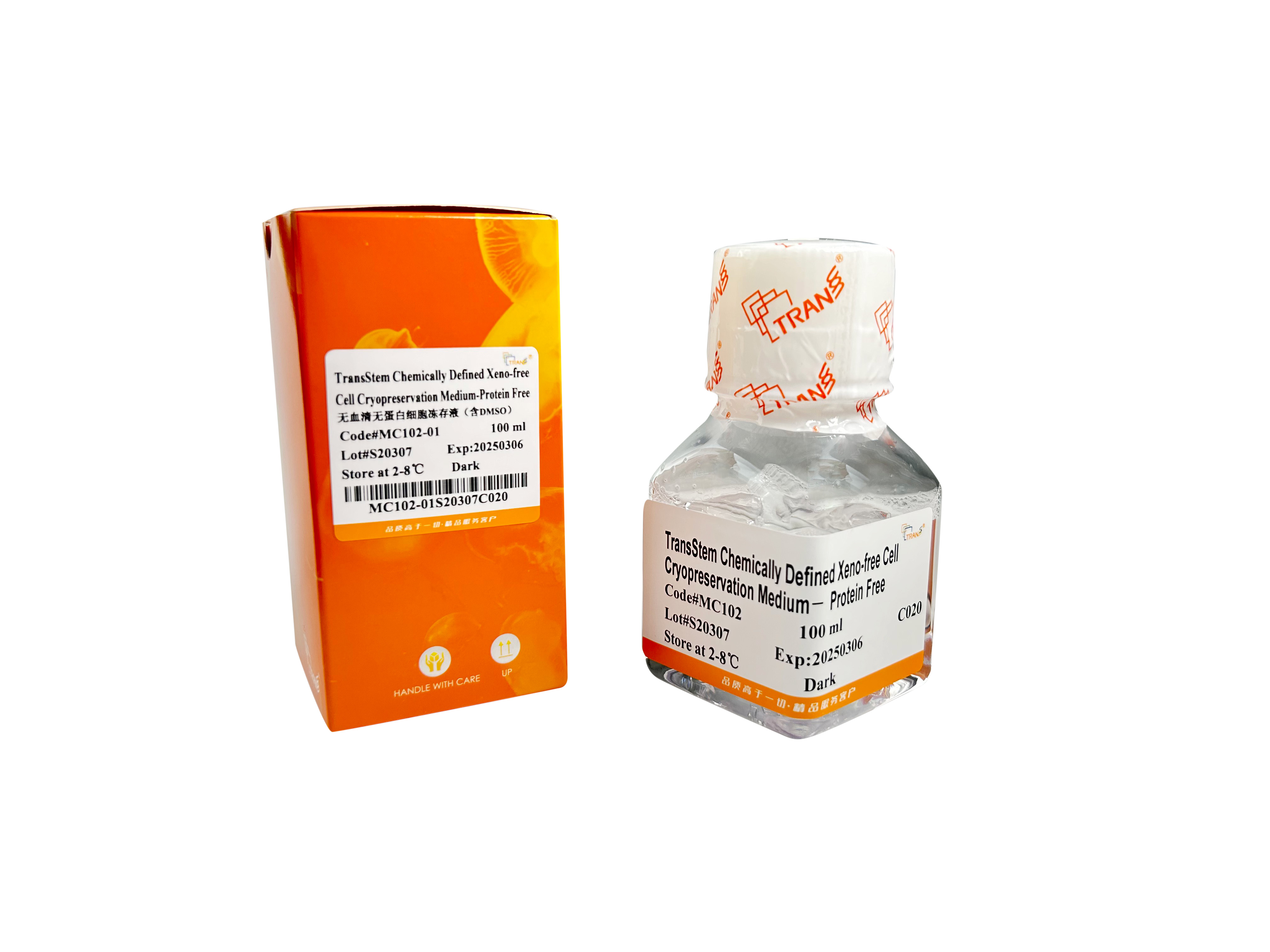 TransStem? Chemically Defined Xeno-free Cell Cryopreservation Medium—Protein Free 是一種化學(xué)成分明確、無動物源性成分、不含蛋白的即用型細胞凍存液,含10% 二甲基亞砜(DMSO),可用于凍存各種細胞類型,包括間充質(zhì)干細胞,淋巴細胞等。該產(chǎn)品穩(wěn)定性好,能有效提高各類細胞凍存后的復(fù)蘇活率。使用該產(chǎn)品凍存細胞可直接存放于-80℃冰箱凍存,無需經(jīng)過費時的程序降溫過程。