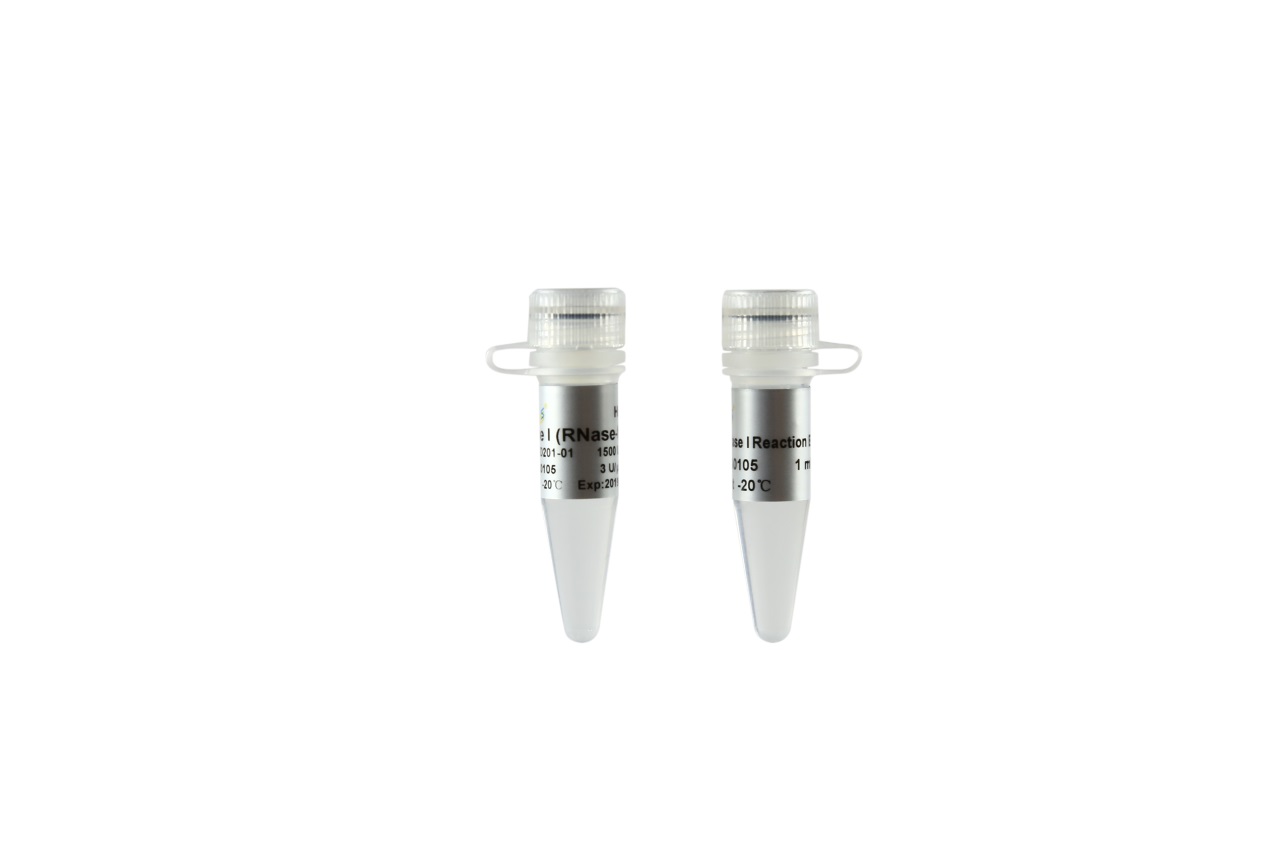 DNase I,即Deoxyribonuclease I,中文名稱為脫氧核糖核酸酶I,是一種可以消化單鏈或雙鏈DNA產生單脫氧核苷酸或單鏈或雙鏈的寡脫氧核苷酸的核酸內切酶。DNase I水解單鏈或雙鏈DNA后的產物,5'端為磷酸基團,3'端為羥基。DNase I活性依賴于鈣離子,并能被鎂離子或二價錳離子激活。鎂離子存在條件下,DNase I可隨機剪切雙鏈DNA的任意位點;二價錳離子存在條件下,DNase I可在同一位點剪切DNA雙鏈,形成平末端,或1-2個核苷酸突出的粘末端。