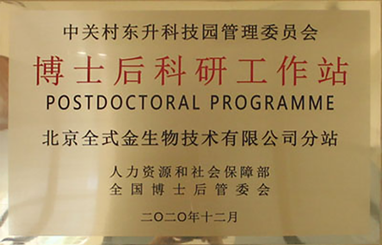 為加強博士后工作對提高企業(yè)創(chuàng)新能力的支持力度,推動產(chǎn)學研深度融合,在北京市人力資源和社會保障局和中關村東升科技園的支持下,全式金獲準設立園區(qū)類博士后科研工作站分站,開展博士后工作。
