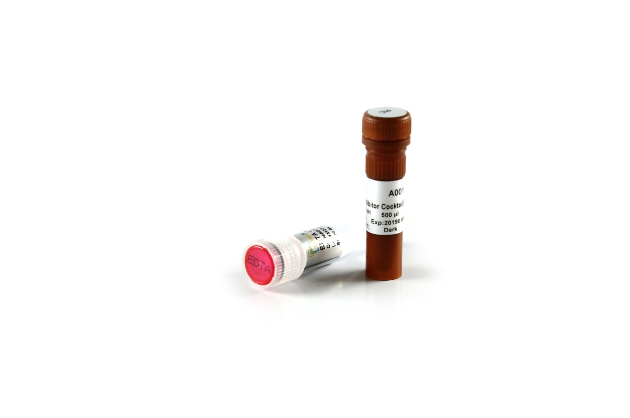 本產(chǎn)品是7種獨(dú)立的蛋白酶抑制劑(AEBSF,Aprotinin,Bestatin,E-64, Leupeptin,Pepstatin A,EDTA)的混合物,優(yōu)化的配比使得本產(chǎn)品可以抑制幾乎所有蛋白酶,包括絲氨酸蛋白酶、半胱氨酸蛋白酶、天冬氨酸蛋白酶、丙氨酰-氨基肽酶、胃蛋白酶、金屬蛋白酶等的活性,全方位防止蛋白降解。本產(chǎn)品適用于蛋白純化、Western Blot、Co-IP、ChIP、蛋白激酶活性測定等實(shí)驗(yàn)。