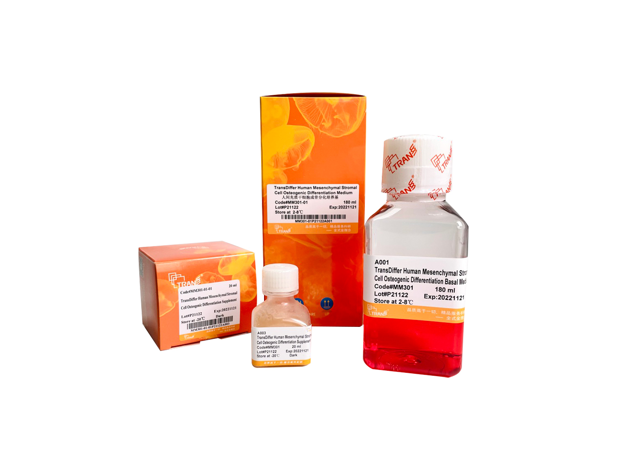 TransDiffer? Human Mesenchymal Stromal Cell Osteogenic Differentiation Medium是一種含血清的完全培養(yǎng)基,適用于將人間充質(zhì)干細(xì)胞(Human Mesenchymal Stromal Cells, MSCs)向成骨細(xì)胞分化。本試劑盒普適性強(qiáng),適用于多種培養(yǎng)體系(含血清及無(wú)血清)培養(yǎng)的不同來(lái)源(人多能性干細(xì)胞衍生、骨髓、臍帶、脂肪來(lái)源)的MSCs。本產(chǎn)品穩(wěn)定性好,配制好的完全培養(yǎng)基可于2-8℃穩(wěn)定保存1個(gè)月。本產(chǎn)品分化效率高,可用于間充質(zhì)干細(xì)胞多向分化潛能鑒定中成骨分化的鑒定。